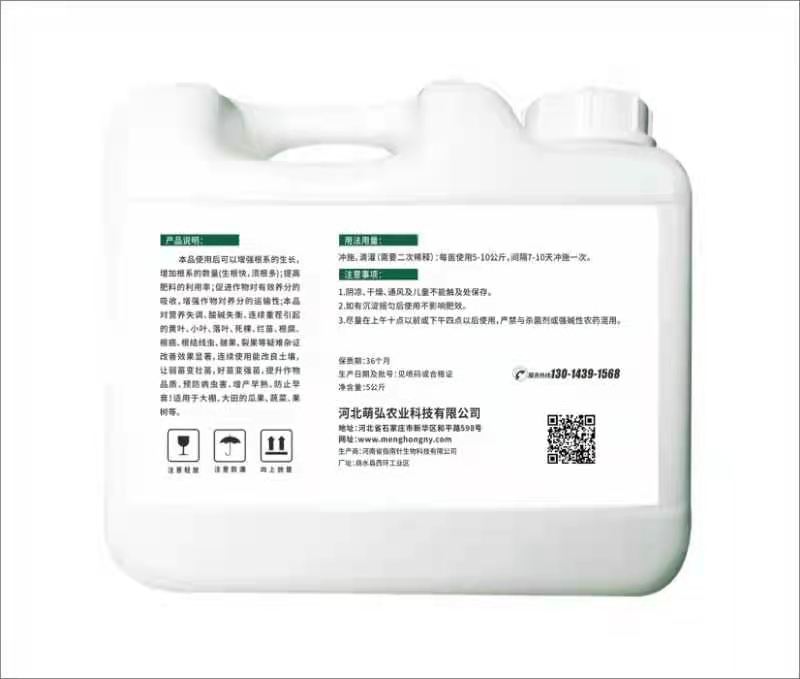 河北萌弘農業(yè)科技有限公司是一家集研發(fā)、銷售、生產服務為一體推廣高新科技為主的綜合性企業(yè),目前主要從事高端液肥,葉面肥,沖施肥的研發(fā)生產和銷售。企業(yè)專注于作物增產的營養(yǎng)方案開發(fā),秉承讓作物營養(yǎng)科學規(guī)范之道,為農業(yè)豐產助力。